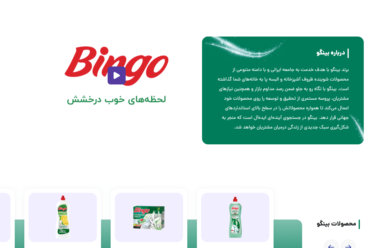 وبسایت بینگو، یکی از برندهای زیر مجموعه گروه صنعتی گلرنگ، با هدف معرفی دامنه متنوعی از محصولات شوینده ظروف آشپزخانه و البسه راهاندازی شده است
